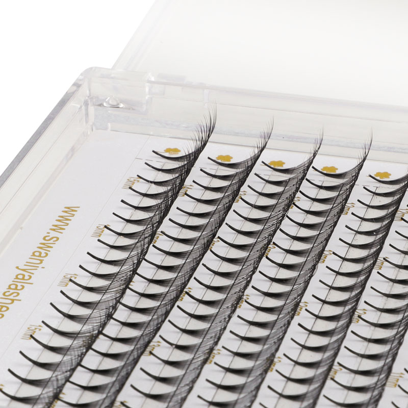 מעריצי הריסים של Swaniya מוקדמים מוכנים לשימוש, מה שהופך את תהליך היישום למהיר וקל. כל מגש מכיל 12 שורות של 10 ריסים שהוגדרו מראש, ומבטיח שיש לך מספיק ריסים עבור יישומים מרובים. הריסים מיוצרים עם סיבי PBT באיכות גבוהה, ומספקים תחושה קלה ונוחה.